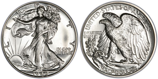 Walking Liberty half dollars were produced between 1916-1947. Examples from the 1940s are often in better condition than earlier years. Early dates are often very worn.