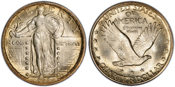 Standing Liberty quarters were produced from 1916-1930. The examples typically found in junk silver are usually highly circulated with pre-1925 coins having the date completely worn off.